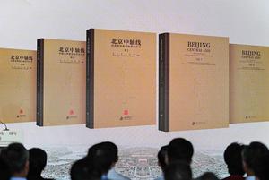 (250727) -- BEIJING, 27 julio, 2025 (Xinhua) -- Una colección de libros titulada "Eje Central de Beijing: Un Conjunto de Edificios que Exhibe el Orden Ideal de la Capital China" es presentada, en Beijing, capital de China, el 27 de julio de 2025. Un evento para conmemorar el primer aniversario de la exitosa inscripción del Eje Central de Beijing en la Lista del Patrimonio Mundial de la UNESCO se celebró aquí el domingo, mostrando los logros alcanzados en la protección e investigación del Eje Central. (Xinhua/Chen Zhonghao) (oa) (da)