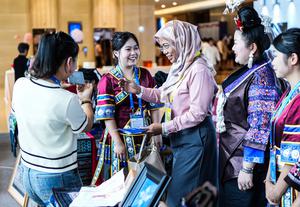 (250726) -- GUIYANG, 26 julio, 2025 (Xinhua) -- Una delegada conversa con artesanas locales de bordado durante la Semana de la Cooperación Educativa China-ASEAN 2025, en la Nueva Area de Gui'an, en la provincia de Guizhou, en el suroeste de China, el 26 de julio de 2025. El evento, que comenzó aquí el sábado, está diseñado para fortalecer los lazos educativos y culturales entre China y los países de la ASEAN. (Xinhua/Tao Liang) (jg) (da)