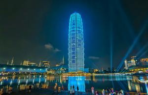 (250724) -- ZHENGZHOU, 24 julio, 2025 (Xinhua) -- Imagen del 23 de julio de 2025 de un edificio iluminado visto cerca del Centro Internacional de Convenciones y Exposiciones de Zhengzhou, sede de la Cumbre de Medios de Comunicación y Think Tanks de la Organización de Cooperación de Shanghai (OCS), en Zhengzhou, en la provincia de Henan, en el centro de China. Con el lema "Defender el 'Espíritu de Shanghai' para construir un hogar más hermoso", la Cumbre de Medios de Comunicación y Think Tanks de la OCS se realiza aquí del 23 al 27 de julio. (Xinhua/Gu Yu) (jg) (ah) (ce)