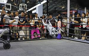 (250726) -- SHANGHAI, 26 julio, 2025 (Xinhua) -- Personas observan a un perro robótico mostrando sus habilidades en el área de exposición de la Conferencia Mundial sobre IA y Reunión de Alto Nivel sobre la Gobernanza Global de la IA 2025, en Shanghai, en el este de China, el 26 de julio de 2025. El evento comenzó aquí el sábado. Más de 1.000 funcionarios y representantes de industrias, universidades e institutos de investigación, tanto de China como del exterior, asistieron a la ceremonia de apertura. (Xinhua/Fang Zhe) (jg) (da)