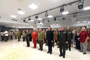 (250724) -- LA HABANA, 24 julio, 2025 (Xinhua) -- Imagen del 23 de julio de 2025 del embajador chino en Cuba, Hua Xin (2-d-frente), participando en la celebración del 98º aniversario de la fundación del Ejército Popular de Liberación (EPL), en La Habana, capital de Cuba. La Embajada de China en Cuba celebró el miércoles el 98º aniversario de la fundación del EPL con un acto al que asistieron altos jefes militares cubanos, funcionarios de la Cancillería de la isla y miembros del cuerpo diplomático. (Xinhua/Joaquín Hernández) (jh) (jg) (ah) (ce)