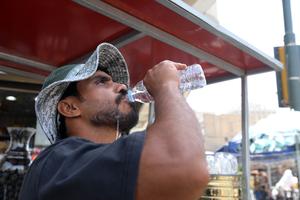 (250724) -- BAGDAD, 24 julio, 2025 (Xinhua) -- Imagen del 2 de julio de 2025 de un hombre bebiendo agua en medio de una ola de calor, en Bagdad, Irak. Medio Oriente se enfrenta a una ola de calor abrasadora estas semanas, que está afectando gravemente la vida de las personas en la región. (Xinhua/Khalil Dawood) (da) (ra) (ce)