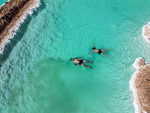 (250728) -- SIWA, 28 julio, 2025 (Xinhua) -- Vista aérea tomada con un dron el 28 de julio de 2025 de turistas flotando en un lago salado en el oasis de Siwa, en la Gobernación de Matrú, Egipto. El oasis de Siwa se encuentra en el desierto occidental de Egipto, a unos 800 kilómetros de El Cairo. Existen numerosos lagos salados naturales en los que se puede flotar sin esfuerzo gracias a la alta concentración de sal. (Xinhua/Ahmed Gomaa) (rtg) (ah) (vf)