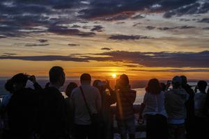 (250704) -- BEIJING, 4 julio, 2025 (Xinhua) -- Turistas toman fotografías del sol saliendo en el Pabellón Dongji, en la...