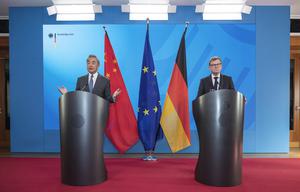 (250704) -- BERLIN, 4 julio, 2025 (Xinhua) -- El ministro de Relaciones Exteriores chino, Wang Yi, también miembro del Buró...