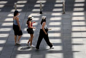 (250703) -- SEVILLA, 3 julio, 2025 (Xinhua) -- Imagen del 2 de julio de 2025 de personas caminando con una...