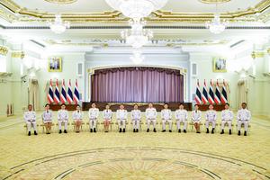 (250703) -- BANGKOK, 3 julio, 2025 (Xinhua) -- Nuevos miembros del gabinete posan para una fotografía grupal en la sede...