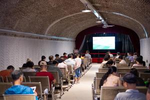 (250703) -- HANGZHOU, 3 julio, 2025 (Xinhua) -- Residentes se refrescan en un refugio antiaéreo, en Hangzhou, en la provincia...