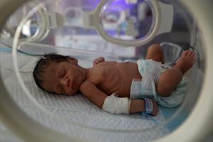 (250703) -- GAZA, 3 julio, 2025 (Xinhua) -- Imagen del 2 de julio de 2025 de un bebé prematuro palestino...