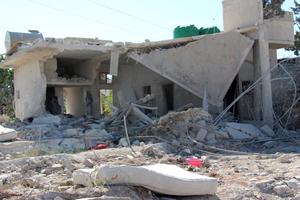 (250703) -- HAMA, 3 julio, 2025 (Xinhua) -- Imagen del 2 de julio de 2025 de un edificio dañado visto...