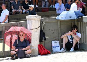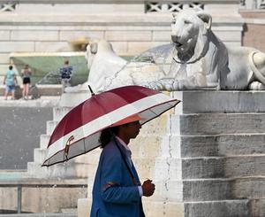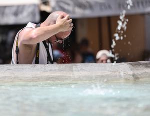 (250703) -- ROMA, 3 julio, 2025 (Xinhua) -- Imagen del 27 de junio de 2025 de un hombre refrescándose en...