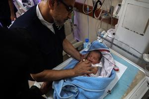 (250703) -- GAZA, 3 julio, 2025 (Xinhua) -- Imagen del 2 de julio de 2025 de un bebé prematuro palestino...