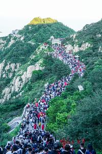 (250731) -- TAI'AN, 31 julio, 2025 (Xinhua) -- Turistas visitan el monte Tai, en Tai'an, en la provincia de Shandong,...
