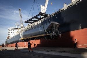 (250731) -- BUENOS AIRES, 31 julio, 2025 (Xinhua) -- Imagen del 30 de julio de 2025 de operarios portuarios descargando...