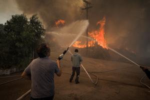(250731) -- DROSOPIGI, 31 julio, 2025 (Xinhua) -- Imagen del 26 de julio de 2025 de rescatistas combatiendo las llamas,...