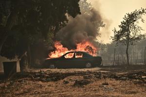 (250731) -- DROSOPIGI, 31 julio, 2025 (Xinhua) -- Imagen del 26 de julio de 2025 de un automóvil incendiándose, en...