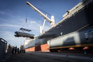 (250731) -- BUENOS AIRES, 31 julio, 2025 (Xinhua) -- Imagen del 30 de julio de 2025 de una grúa descargando...