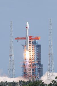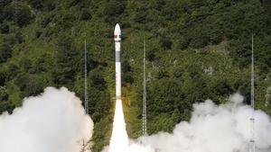 (250731) -- XICHANG, 31 julio, 2025 (Xinhua) -- Un cohete portador Kuaizhou-1A (KZ-1A) que transporta el Satélite de Teledetección de...