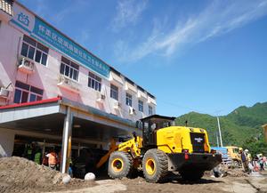 (250730) -- BEIJING, 30 julio, 2025 (Xinhua) -- Rescatistas retiran limo en una clínica comunitaria, en el poblado de Liulimiao...