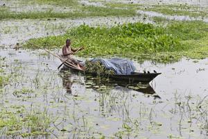 (250731) -- DHAKA, 31 julio, 2025 (Xinhua) -- Imagen del 30 de julio de 2025 de un hombre remando un...