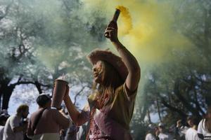 (250731) -- MONTEVIDEO, 31 julio, 2025 (Xinhua) -- Una médica participa en los festejos de los estudiantes de medicina recién graduados en el parque Batlle, en Montevideo, capital de Uruguay, el 31 de julio de 2025. (Xinhua/Nicolás Celaya) (nc) (jg) (ah) (ce)