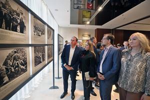 (250801) -- MINSK, 1 agosto, 2025 (Xinhua) -- Imagen del 31 de julio de 2025 de invitados visitando una exposición fotográfica, en Minsk, Bielorrusia. La Agencia de Noticias Xinhua presentó el jueves una exposición fotográfica en Minsk para conmemorar el 80°aniversario de la victoria en la Guerra de Resistencia del Pueblo Chino contra la Agresión Japonesa y la Guerra Antifascista Mundial. El evento, titulado "Hombro con Hombro: Hacia una Victoria Común", atrajo a más de 300 invitados de círculos políticos, militares, académicos, medios de comunicación y organizaciones públicas de Bielorrusia. (Xinhua/Cao Yang) (rtg) (ra) (vf)