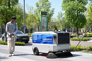 (250803) -- CHENGDU, 3 agosto, 2025 (Xinhua) -- Un empleado opera un vehículo de limpieza autónoma en la villa TWG para los Juegos Mundiales (TWG, por sus siglas en inglés) de Chengdu 2025, en Chengdu, en la provincia de Sichuan, en el suroeste de China, el 3 de agosto de 2025. (Xinhua/Xu Bingjie) (rtg) (ah)