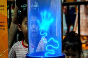 (250803) -- BEIJING, 3 agosto, 2025 (Xinhua) -- Imagen del 2 de agosto de 2025 de un niño interactuando con una instalación en un museo de ciencia y tecnología, en Nanning, en la región autónoma de la etnia zhuang de Guangxi, en el sur de China. (Xinhua/Yu Xiangquan) (oa) (da)