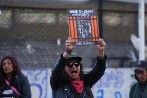(250801) -- BOGOTA, 1 agosto, 2025 (Xinhua) -- Un hombre sostiene un cartel durante la audiencia de lectura de sentencia del expresidente colombiano, Alvaro Uribe, frente al complejo judicial de Paloquemao, en la ciudad de Bogotá, capital de Colombia, el 1 de agosto de 2025. El expresidente de Colombia Alvaro Uribe Vélez (2002-2010) fue condenado el viernes a 12 años de prisión domiciliaria tras ser hallado culpable de soborno en actuación penal y fraude procesal, en una histórica decisión que lo convierte en el primer exmandatario condenado y privado de la libertad en el país. (Xinhua/Andrés Moreno) (am) (rtg) (ra) (ce)