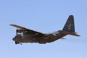 (250801) -- ZARAQ, 1 agosto, 2025 (Xinhua) -- Un avión de la Fuerza Aérea Jordana que transporta ayuda humanitaria para Gaza despega de una base militar, en Zaraq, Jordania, el 1 de agosto de 2025. Varios países, incluyendo Jordania, Egipto, Alemania, Emiratos Arabes Unidos, Francia y España, realizaron el viernes lanzamientos aéreos conjuntos en Gaza, entregando ayuda humanitaria en el enclave. (Xinhua/Mohammad Abu Ghosh) (jg) (da) (vf)