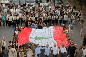 (250804) -- BEIRUT, 4 agosto, 2025 (Xinhua) -- Personas participan en una marcha para conmemorar a las víctimas de la explosión del puerto de Beirut, en Beirut, Líbano, el 4 de agosto de 2025. Cientos de personas, entre ellas familiares de las víctimas y heridos de la catastrófica explosión del puerto de Beirut en 2020, se reunieron aquí el lunes en la Plaza de los Mártires y marcharon hacia el puerto para conmemorar la tragedia. (Xinhua/Bilal Jawich) (oa) (ah) (vf)