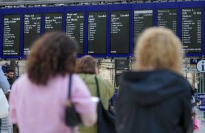 (250805) -- GLASGOW, 5 agosto, 2025 (Xinhua) -- Imagen del 4 de agosto de 2025 de paneles de información digital...