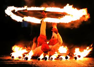 (250805) -- KANDY, 5 agosto, 2025 (Xinhua) -- Imagen del 4 de agosto de 2025 de un bailarín de fuego...