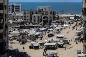 (250805) -- GAZA, 5 agosto, 2025 (Xinhua) -- Imagen del 4 de agosto de 2025 de tiendas de campaña para...