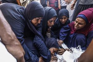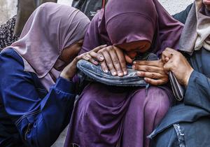 (250805) -- GAZA, 5 agosto, 2025 (Xinhua) -- Imagen del 4 de agosto de 2025 de palestinas lamentándose por una...