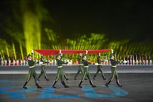 (250807) -- CHENGDU, 7 agosto, 2025 (Xinhua) -- Los portadores finales de la antorcha sostienen la llama durante la ceremonia...