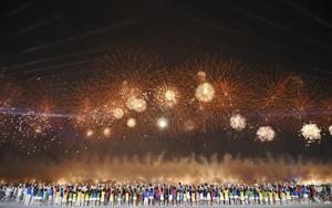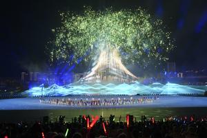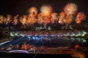 (250807) -- CHENGDU, 7 agosto, 2025 (Xinhua) -- Fuegos artificiales son vistos durante la ceremonia de inauguración de los Juegos...