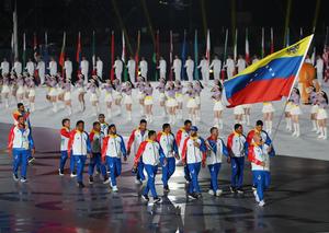 (250807) -- CHENGDU, 7 agosto, 2025 (Xinhua) -- Miembros de la delegación de Venezuela desfilan durante la ceremonia de inauguración...