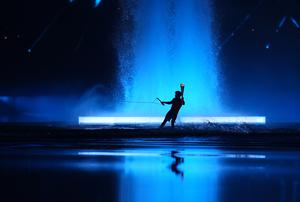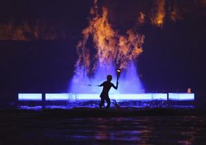 (250807) -- CHENGDU, 7 agosto, 2025 (Xinhua) -- Un portador final de la antorcha sostiene la llama durante la ceremonia...