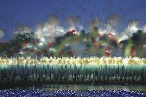 (250807) -- CHENGDU, 7 agosto, 2025 (Xinhua) -- Fuegos artificiales son vistos durante la ceremonia de inauguración de los Juegos...