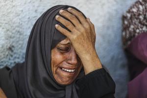 (250807) -- GAZA, 7 agosto, 2025 (Xinhua) -- Imagen del 6 de agosto de 2025 de una palestina lamentándose por...
