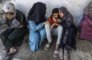 (250807) -- GAZA, 7 agosto, 2025 (Xinhua) -- Imagen del 6 de agosto de 2025 de palestinas lamentándose por las...