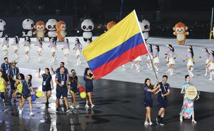 (250807) -- CHENGDU, 7 agosto, 2025 (Xinhua) -- Miembros de la delegación de Colombia desfilan durante la ceremonia de inauguración...