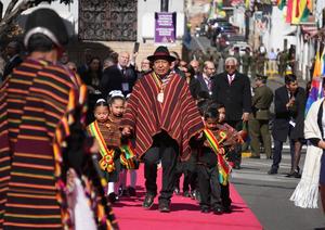(250806) -- SUCRE, 6 agosto, 2025 (Xinhua) -- El vicepresidente boliviano, David Choquehuanca (c), participa en el inicio de los...