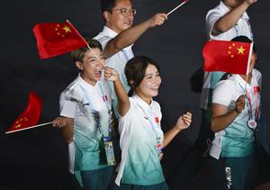 (250807) -- CHENGDU, 7 agosto, 2025 (Xinhua) -- Miembros de la delegación de China desfilan durante la ceremonia de inauguración...
