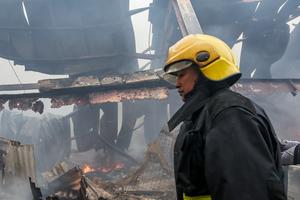 (250806) -- MANILA, 6 agosto, 2025 (Xinhua) -- Un bombero camina en el sitio de un gran incendio que afectó...