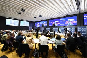 (250808) -- GINEBRA, 8 agosto, 2025 (Xinhua) -- Imagen del 7 de agosto de 2025 de una conferencia de prensa...