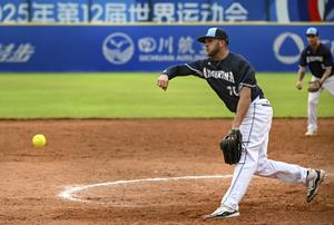 (250808) -- CHENGDU, 8 agosto, 2025 (Xinhua) -- Roman Godoy, de Argentina, compite durante el partido del grupo A de...