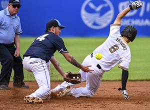 (250808) -- CHENGDU, 8 agosto, 2025 (Xinhua) -- Sato Koki (d), de Japón, compite durante el partido del grupo A...