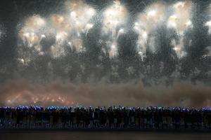 (250807) -- CHENGDU, 7 agosto, 2025 (Xinhua) -- Fuegos artificiales son vistos durante la ceremonia de inauguración de los Juegos...